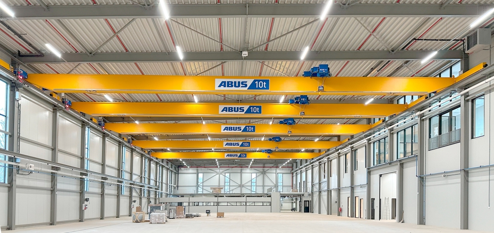 Las grúas ABUS instaladas en el campus contribuyen a los objetivos de sostenibilidad de Vekoma Rides gracias a su eficiencia energética y larga vida útil