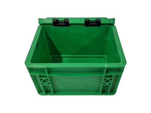 Modelo: Auer EG21512 HG Tipo: Contenedor europeo cerrado Dimensiones externas: 20 × 15 × 12 cm Dimensiones interiores: 17 × 12 × 11,5 cm Altura interior utilizable: 10,5 cm Volumen: 2 litros Peso: aprox. 320 g Material: Polipropileno (PP) Color: gris plateado similar al RAL 7001 Funciones: Insensible a ácidos y álcalis Resistente al frío y al calor Adecuado para sistemas de transportadores Diseño del suelo: liso, cerrado Manillas: cerradas No apilables con contenedores europeos de 30 × 20 cm Peso incluyendo embalaje, aprox. 40 kg |