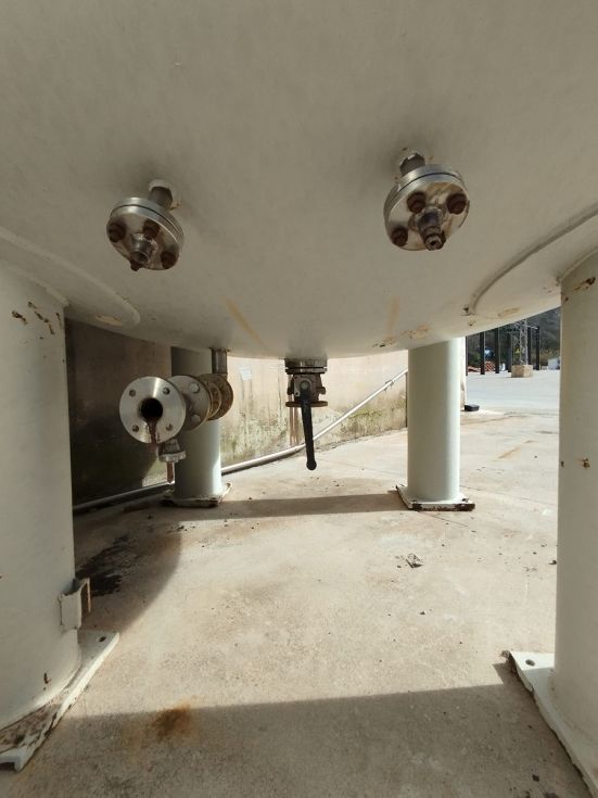 | Detalles | Dos depósitos de 25.000 litros en Inox-316TI forrados en acero al carbono. Fondo superior e inferior klopper. Fondo superior con brida para agitación (la agitación que dispone está inservible), boca de hombre y 9 tubuladuras DN150. Fondo inferior con salida centrada y válvula de accionamiento manual. Sobre cuatro patas. Precio económico a convenir. |
