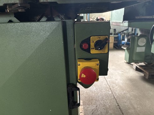 | Detalles | Technical characteristics Wheel diameter : 700 mmMaximum cutting height : 350 mmMax. cutting width : 675 mmCast-iron worktable, tiltable up to 20°.Table dimensions : 1000 x 700 mmBlade dimesions : 5000 x 45 mm maxBlade guideElectric brake4kW (5.5 hp) motorSuction nozzle diameter : 120 mmSuction requirement : 1200 m3/h Power and Motors Voltage: 380 VPluging: Three-phasedPower: 4 KwMotor: 5,5 CV Overall dimensions Lenght: 1700 mmWidth: 1260 mmHeight: 2230 mmWeight: 650 Kg |
