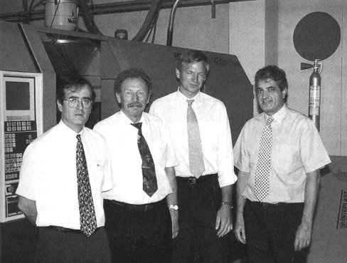 Figura 3 De izquierda a derecha: Joan Viana, director técnico de Inteplast; Gherard Kütsing, director de la división Demag de Mannesmann; Josef Regenhardt, director del servicio postventa de Mannesmann; y Joan Carré, director general de Inteplast.