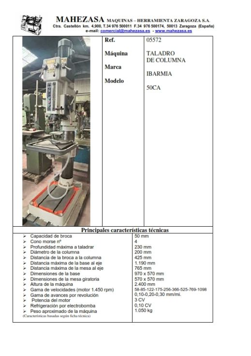 | Detalles | Capacidad de broca 50 mm Cono morse nº 4 Profundidad de taladrado 230 mm |