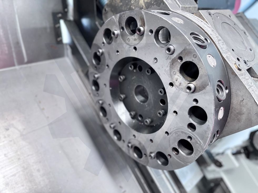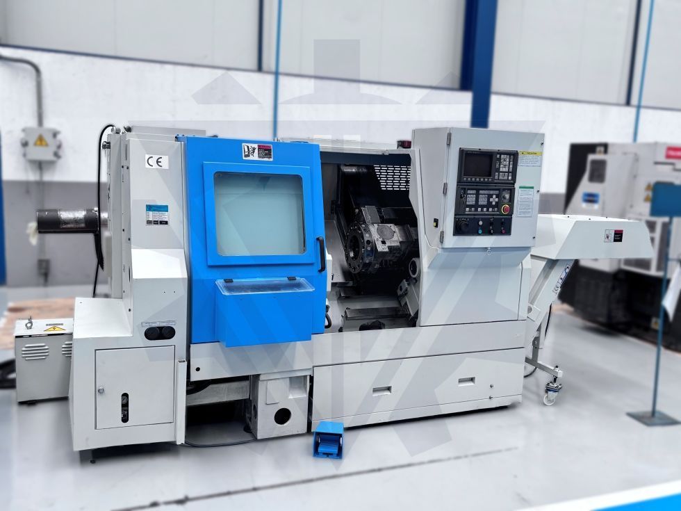 | Detalles | CNC FANUC 0iT Distancia entre puntos 580 mm. Dia. Max. volteo 450 mm. Dia. Max. Torneado 322 (298VDI) mm. Agujero del husillo principal 55 mm. Recorridos X 221 mm.; Z 590 mm. Velocidad husillo 50-4.500 r.pm. Motor del husillo 11Kw/375-3000 Avances Rápido X: 18; Z: 24 (m/min.) PAR MAX. 208 Nm. Torreta 12 estaciones Torreta motorizada 12/6000 rpm Recorrido de la caña 12/6000rpm Ø de la caña 90 mm Cono de la caña CM 5 Avanza barras LNS mod. HYS 6.42 con 6 cañoneras de 44, 40, 34, 28, 22, 14 de 6 a 42 mm. Cabezal porta-pinzas ASA 6” DIN-6343 nº 173 E-42, bar passage 42 mm. Recogedor de piezas con movimiento hidraulico en modo manual o automático Torreta bidireccional 12 posiciones Presseter Herramientas Recogedor de piezas Contrapunto hidráulico Intercambiador de calor en armario eléctrico, eliminando la entrada de aire del exterior al interior del armario Sistema de engrase automático Volante electrónico Carenado Herramientas varias Extractor de virutas |