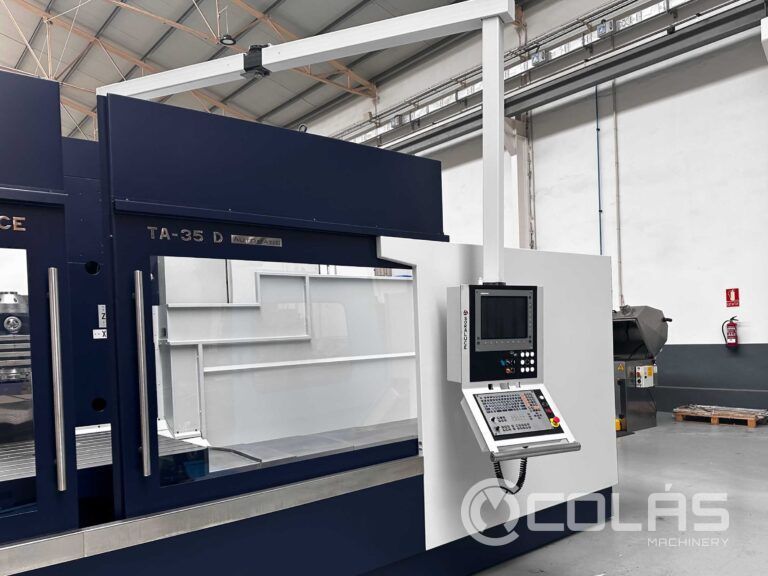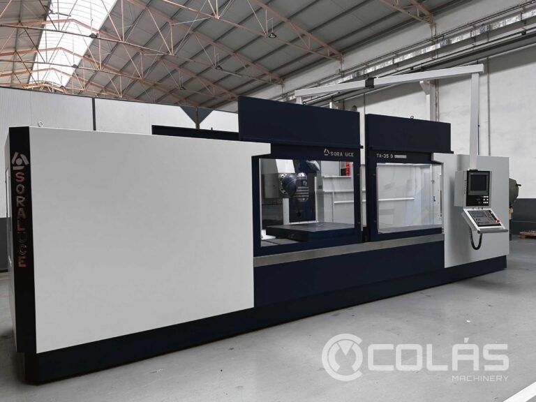 | Detalles | Fabricante SORALUCE Modelo TA-D-35A Año 2009 CNC HEIDENHAIN TNC-530 Mesa Superficie de la mesa 1250 x 1.250 mm. Peso máximo sobre mesa 4.000 kg Recorridos y avances Recorridos (X/Y/Z) 3.500/1.200/1.250 mm Avance máximo Trabajo (X,Y,Z) 12.000 mm/min Avance máximo Ejes (X,Y,Z) 25.000 mm/min Máximo empuje de los ejes 10.000 N. Cabezal Tipo Cabezal Automático 2.5º/2.5º Cono Cabezal ISO 50 DIN 69871 AD Gama de Revoluciones 4.000 rpm Potencia de cabezal 24 kW Equipamiento Carenado integral INCLUIDO Doble Evacuador de viruta Longitudinal INCLUIDO Evacuador de viruta Transversal INCLUIDO Refrigeración interna 20 Bar INCLUIDO Deposito 500l con separador magnético filtro de papel INCLUIDO Volante Portátil Heidenhain HR-410 Equipo Refrigerador Armario Eléctrico INCLUIDO Otros Potencia total 46 kVA Peso máquina 18.000 kg Dimensiones Maquina 7.800 x 4.850 x 3.530 mm. |