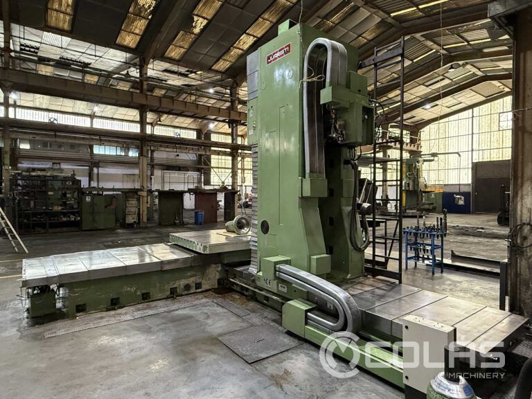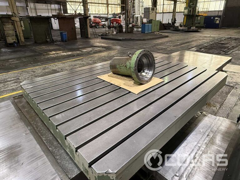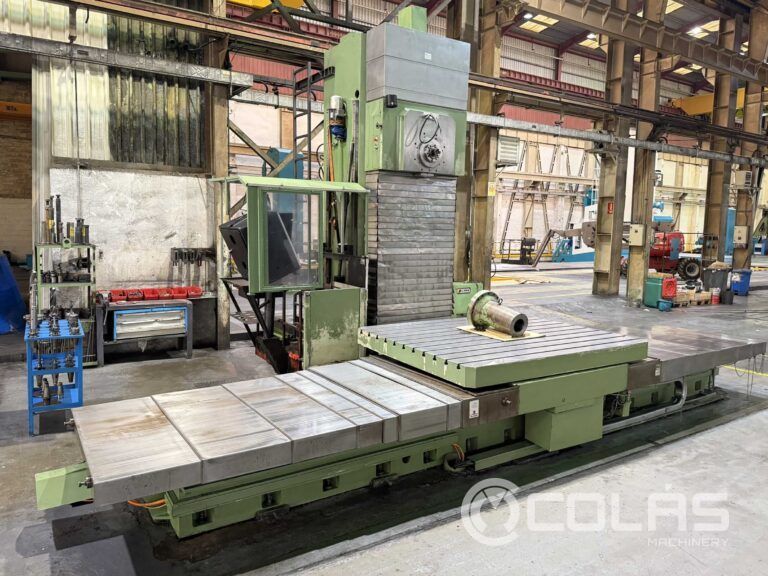 Fabricante JUARISTI Modelo TS-5 MG 20 5 EJES Año 1996 CNC HEIDENHAIN TNC-430 CA Mesa Superficie de la mesa 2.000 x 2.500 mm. Tipo mesa Juaristi MG-20 Peso admisible sobre mesa 20.000 kg. Giro mesa (Eje B) Continuo (0.001º) Ejes Curso trasversal (Eje X) 5.000 mm. Curso longitudinal (Eje W) 2.000 mm. Curso vertical (Eje Y) 2.500 mm. Curso axial (Eje Z) 800 mm. Ejes controlados X, Y, Z, W, B Avance rápido ejes 10.000 mm/min Cabezales Diámetro de la caña 150 mm. Cabezal universal 45º manual INCLUIDO Cabezal salida directa INCLUIDO Cono ISO 50 Número de gamas 2 Velocidad cabezal 0-2.000 rpm Gama baja 12 – 732 r.p.m. Gama alta 733 – 2.000 r.p.m. Giro a par constante 12 – 183 r.p.m Giro a potencia constante 183 – 2000 r.p.m. Potencia de cabezal 37 kW Equipamiento Refrigeración externa INCLUIDO Volante portátil HEIDENHAIN HR-410 Herramientas y Aaccesorios INCLUIDO Otros Potencia total instalada 74 kVA Peso máquina 35.000 kg.