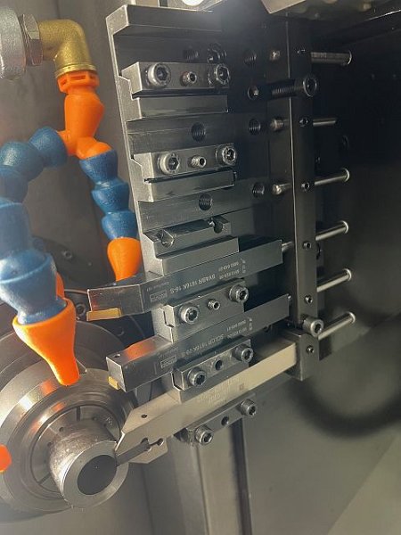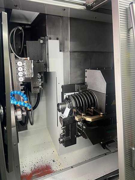 | Detalles | CONTROLS Control CNC FANUC 160 I FUNCIONES BÁSICAS Número de cabezales: 2 number of c-axes: 2 ZONA DE TRABAJO Diámetro de torneado (máx.): 42 mm Diámetro de la barra (máx.): 42 mm MAIN SPINDLE Gama de velocidades a: 6500 /min COUNTER SPINDLE Gama de velocidades a: 6500 /min X/Z SLIDE Trayecto de desplazamiento eje X: 65 mm Trayecto de desplazamiento eje Y: 350 mm Marcha rápida Z: 30000 mm/min Marcha rápida x: 30000 mm/min Marcha rápida y: 30000 mm/min X/Z SLIDE Trayecto de desplazamiento Z: 320 mm Trayecto de desplazamiento eje X: 265 mm Trayecto de desplazamiento eje Y: 326 mm Marcha rápida y: 30000 mm/min DATOS DE CONEXIÓN ELÉCTRICOS Potencia de conexión: 54 kVA Tensión de conexión: 400 V Frecuencia de la red: 50 Hz DIMENSIONES / PESO espacio requerido -izquierdo/derecha-: 4900 mm espacio requerido -delante/atrás-: 1630 mm Altura total: 1920 mm Peso total aprox.: 4400 kg ACCESORIOS (TORNO) Almacén de barras: Sí Transportador de virutas: Sí Main spindle Ø42mm / Counter spindle Ø38mm Axes: Z1 / Z2 X1 / X2 Y1 / Z2 C1 / C2 Tank capacity: 650 l - 8 internal tool stations - 9 external tool stations - Turning tool shank 16x16 Equipment: - Includes bar feeder - Chip conveyor |