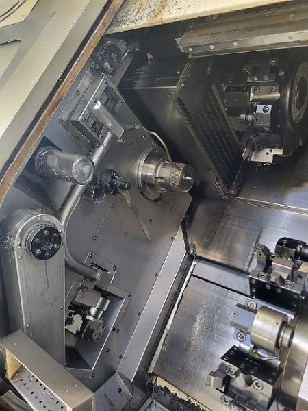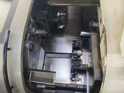 | Detalles | CONTROLS Control CNC FANUC FUNCIONES BÁSICAS Número de cabezales: 2 Número de torretas: 2 live positions: Sí number of c-axes: 2 number of y-axes: 1 number of b-axes: 1 ZONA DE TRABAJO Diámetro de la barra (máx.): 50 mm MAIN SPINDLE Gama de velocidades a: 5000 /min potencia del motor: 11 kW spindle bore diameter: 50 mm Eje c: Sí COUNTER SPINDLE Gama de velocidades a: 5000 /min potencia del motor: 7.5 kW Eje c: Sí Trayecto de desplazamiento Z: 465 mm X/Z SLIDE Portaherramientas: Turret number of tool positions (total): 24 number of live positions: 24 - rotation speeds (max): 6000 /min DATOS DE CONEXIÓN ELÉCTRICOS Tensión de conexión: 400 V Frecuencia de la red: 50 Hz DIMENSIONES / PESO espacio requerido -izquierdo/derecha-: 4500 mm espacio requerido -delante/atrás-: 2200 mm Altura total: 1900 mm Peso total aprox.: 5500 kg ACCESORIOS (TORNO) workpiece unloading system: Sí workpiece measuring device: Sí Transportador de virutas: Sí Grupo hidraúlico: Sí |