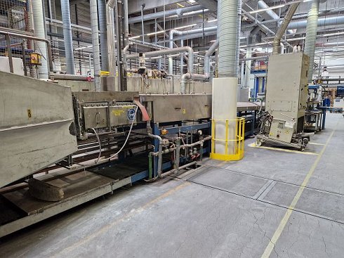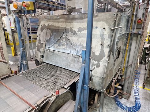 | Detalles | CHARACTERISTICS HEAT TREATMENT EQUIPMENT Modo: Continuo heating method: gas+electric Potencia inst. de calefaccion: 225 kW temperature max.: 1000 °C HEAT TREATMENT COMPARTMENT / ZONE length: 5750 mm Ancho: 650 mm Height: 50 mm DATOS DE CONEXIÓN ELÉCTRICOS Consumo de energía eléctrica (total): 230 kW Tensión de conexión: 400 V Frecuencia de la red: 50 Hz Application: Production of friction linings for clutches Sintering of steel, copper and brass powder materials onto non-ferrous metal/steel sheet Cooling in an oxidation-free atmosphere Complete system with powder application, furnace, cooling section, cleaning Design: Continuous furnace with belt conveyor with heating and cooling section Natural gas and electric heating Heating temperature contro zones 6 Fuel gas (natural gas) approx. 5 Nm3/h Purge gas N2 approx. 30 Nm3/h Process gas H2/N2 60/40% approx. 40 Nm3/h Electrical heating Zone 1: 2 x 27.5 kW Zone 2: 2 x 27.5 kW Zone 3: 2 x 27.5 kW Zone 4: 55 kW Zone 5: 5 kW |
