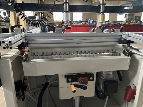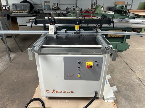 | Detalles | Technical characteristics Semi-automatic multispindle drilling machine 21 spindlesDistance between chucks : 32 mmDistance between first and last chuck : 640 mmMax. drilling depth : 70 mmPneumatic 90° tilting of drilling unitCast-iron table 864 x 500 mmMax. workpiece dimensions : 800 x 3000 mm2.5 hp motor2 pneumatic pressersRuler 3 stopsCycle start with foot pedalCompressed air required : 6-8 bars This machine is available unless sold in the meantime If you need spare parts, blades, knives other accessories (filter systems, compressor, etc.), we will be happy to help you. After validation, the machine will revised, controled, and tested before packing for departure with a 3 months warranty.(**) Lease financing offers can be studied on a case-by-case basis by our partner. (**) please check the warranty contract Power and Motors Voltage: 400 VPluging: Three-phased Overall dimensions Weight: 300 Kg |