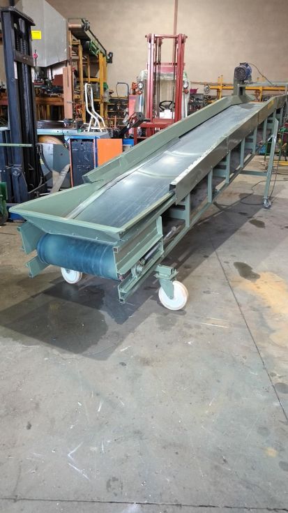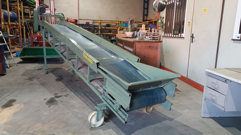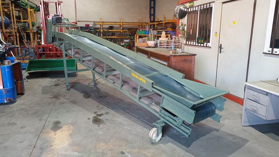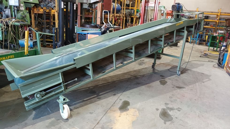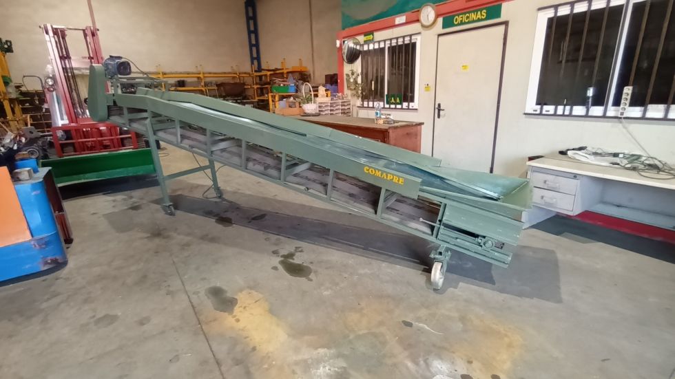 CINTA TRANSPORTADORA CON CABALLETE (regulable) dimensiones 4800x600 m.m Con goma de PVC, Lateral, por toda la goma (metálico) Motoreductor 380V *repasada y revisada