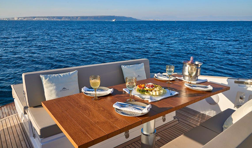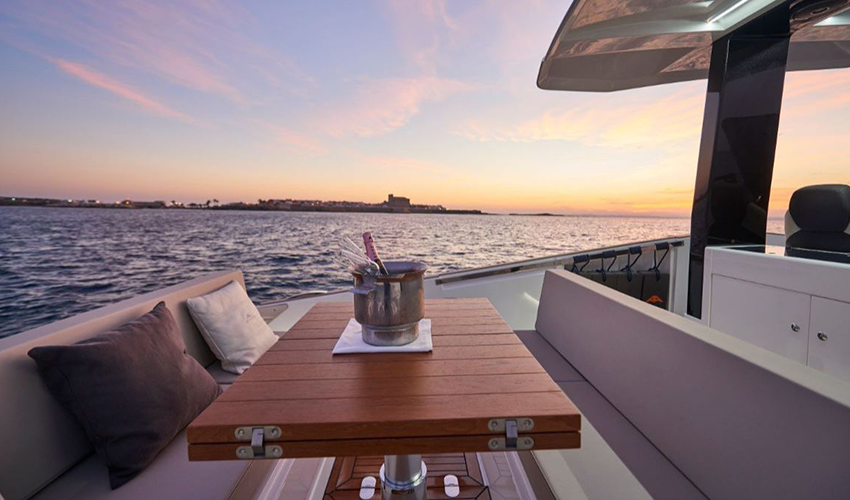 El punto más atrevido lo pondrá la 377 Coupe, la lancha de 12 metros en la que se puede elegir entre los colores más icónicos del Mediterráneo para personalizar la embarcación: Marino Mykonos, Azul Formentera, Blanco Saint Tropez, Dorado Tarifa, Antracita Capri, Negro Deep Sea, Rojo Cinque Terre, Plata Niza o Verde Portofino.