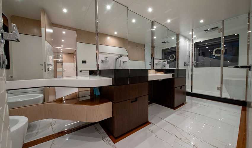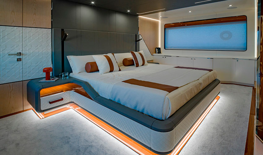 Una vez más, la colaboración del astillero con el diseñador Cristiano Gatto acierta en el estilismo que respira elegancia y carácter, pero también frescura y modernidad.
