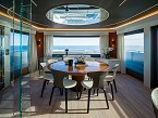 La combinación de materiales nobles y tonos naturales ensalzan la luminosidad del barco creando ambientes idóneos para disfrutar de comidas y cenas a bordo, veladas familiares o simplemente relajarse en medio del mar.