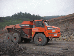 En una visita a la zona de trabajo, son bien visibles los efectos que las obras tienen en la paisaje, con terraplenado, movimiento de tierras, abertura de accesos y la construcción de los túneles y viaductos propiamente dichos. En Amorebieta, cuatro dúmperes articulados Doosan Moxy MT41 transportan a cada viaje que hacen 152 toneladas de tierra y otro material. Un apoyo de peso para el avance de la obra. Al servicio de la empresa Chilo Excavaciones, que los alquiló a Centrocar, los MT41 usan sus 331 kW a 2200 rpm de potencia máxima para pasar cualquier obstáculo en su camino. Los dúmperes articulados de Doosan Moxy disponen de una tracción permanente a 6 ruedas para una distribución por igual de la potencia, mientras que el támdem trasero de giro libre y el sistema de articulación especial ofrecen un rendimiento de marcha excelente.