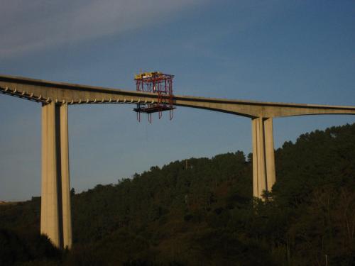 Los 750 m de longitud del viaducto se distribuyen en seis vanos: 75+4 x 150 + 75 m, con una planta que se desarrolla en curva, y cuya pila central supera los 90 m de altura. En su origen, el ancho de tablero era de 12 metros, suficientes para albergar los dos carriles de la N-632. Con la ampliación se llega a una sección de 23 m capaces de alojar las dos calzadas de la autovía con una mediana de separación de 1 metro. Técnicamente, la duplicación se ha realizado mediante un esqueleto metálico cosido al cajón del viaducto original con barras de acero tesadas y jabalcones metálicos sobre los que se apoya la losa de hormigón ligero del voladizo de la ampliación. Para ello se emplearon tres tipos de carros: uno para el montaje del esqueleto metálico, otro para el tesado de barras y, el tercero, para la colocación de jabalcones y el hormigonado de los voladizos.