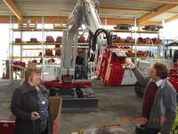 Comenzaba un nuevo día de trabajo y bien temprano sobre las 08:30h los visitantes se dirigieron, de nuevo, a las Oficinas Centrales de Huppenkothen para conocer de primera mano los nuevos productos Takeuchi. El director técnico de Huppenkothen, Martin Hofer, fue el encargado de dar a conocer las bondades de la nueva serie 200 de Takeuchi. Martin Hofer destacó el 12% más de espacio en cabina de todos los modelos nuevos respecto a los antiguos y las mejoras en el equipamiento interior, lo cual demuestra el interés de Takeuchi por incrementar la comodidad del operador de la máquina. También la fiabilidad se ve reforzada, debido a que los latiguillos ahora son interiores y protegidos de daños y desgastes. El bloque de giro del brazo ahora tiene casquillos en todas las posiciones, lo cual refuerza la robustez de este elemento y facilita el mantenimiento.