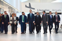 El Rey, acompañado por las autoridades presentes, ha realizado una visita a las instalaciones del Aeropuerto en la que han podido conocer el funcionamiento del mismo. La comitiva ha visitado, entre otras, las zonas de embarque, recogida de equipajes, plataforma de estacionamiento de aeronaves, torre de control, CECOA (Centro de Coordinación de Operaciones Aeroportuarias) y ha atendido las explicaciones de los distintos colectivos de trabajadores que participan en la operativa aeroportuaria.