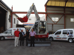 La miniexcavadora Takeuchi TB180FR fue entregada a Miguel Ángel Hernández en las instalaciones de DVM por Antonio Villa, gerente de DVM y Antonio Sánchez, miembro del equipo de ventas de DVM. También asistió a la entrega el gerente de Huppennkothen, Franz Wirth, que vino desde Austria para hacer entrega de la miniexcavadora a tan importante cliente, también felicitó a DVM por el buen trabajo realizado.