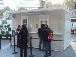 Un módulo prefabricado de Alco sustituye a las taquillas de entrada al edificio en La Pedrera, durante las obras del AVE que impiden su uso. El módulo prefabricado se ha habilitado para dos puestos de venta de entradas y se ha dotado de sistemas de seguridad, además de adaptarse a la funcionalidad necesaria. Para ello, y a pesar de tratarse de un alquiler a corto plazo, se ha adaptado completamente el módulo, instalando dos ventajas especiales de “guillotina” con persiana exterior de aluminio y mostrador a una altura de 1,10 m. Asimismo cuenta con un equipo de aire acondicionado tipo Split, y se le ha añadido también una visera de 60 cm para la protección de los visitantes.