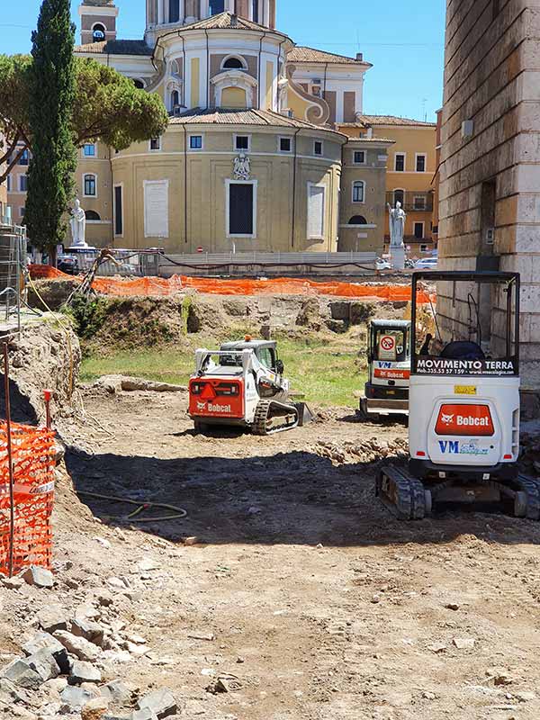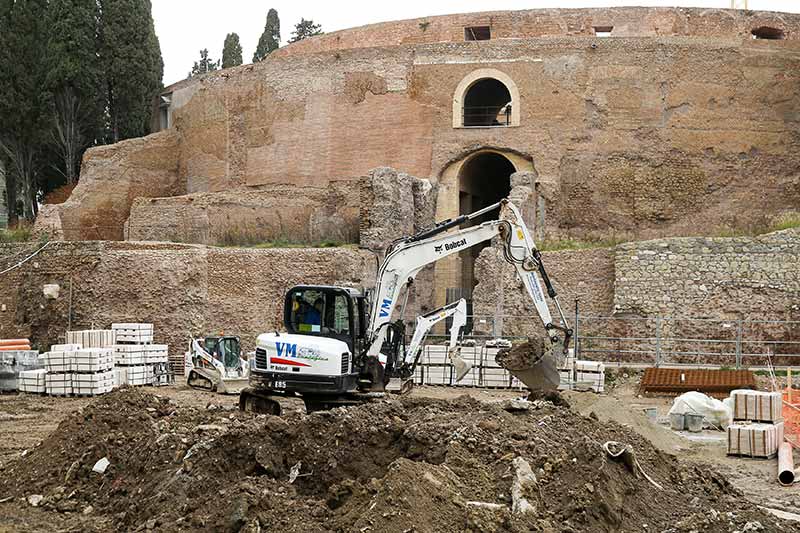 Las excavaciones arqueológicas suponen un trabajo lento y muy meticuloso, que implica el uso de miniexcavadoras para poder trabajar con eficacia sin poner en peligro los tesoros de la antigua Roma. Antes de proceder a los trabajos de excavación, los arqueólogos superintendentes realizan estudios. La primera parte de la excavación puede realizarse con bastante rapidez. Una vez alcanzada determinada profundidad, es necesario proceder de forma extremadamente precisa, hábil y escrupulosa. Se trata de un trabajo lento y paciente en el que cada excavadora está constantemente atendida por un arqueólogo para examinar cada piedra y cada fragmento desenterrado.