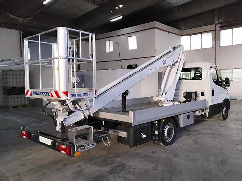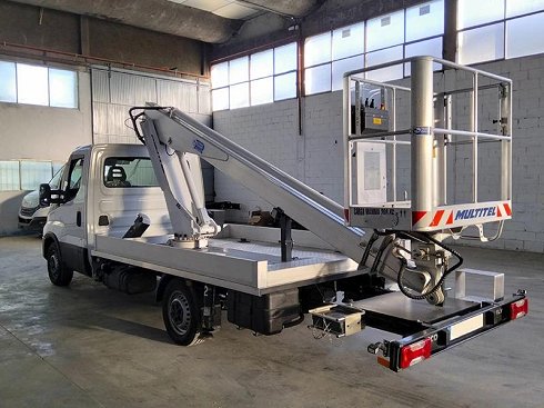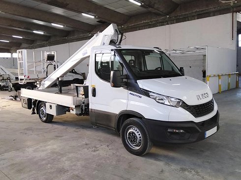 Disponible esta plataforma aérea de 16,3 m, Multitel 160 ALU montada sobre camión IVECO DAILY 35S14. La plataforma está fabricada completamente de aluminio, excepto la torreta, o sea que es una plataforma super ligera. Conjunto entero montado y legalizado. La plataforma tiene una altura de trabajo de 16,3m, alcance lateral de 7,5 m, (200Kg.) y 10,2 m. (80 Kg.) cesta de aluminio para dos personas (carga 200 Kg), con toma eléctrica a 230 v. para conexión de herramientas de mano, giro independiente de la cesta de 60º izq/dcha, y arranque y parada del motor del vehículo también desde la cesta. Plataforma a la venta a buen precio por unidad en stock