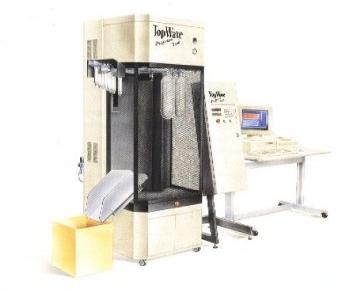 Figura 3 Entre los aparatos de ensayo citados pero no descritos se encuentra éste de ensayo de preformas de envases para medir su soplabilidad y detectar de antemano problemas en la producción. Intervalos de temperatura de uso- Son las temperaturas máxima en que una pieza de un plástico no rebasa la deformación o tensión admisibles como consecuencia de la pérdida de módulo elástico, y mínima en que no se produce una fragilización importante. Como dependen también del nivel de solicitación, estos datos tienen una validez relativa y para determinarlos en función de las cargas es mejor tomar como guía el ensayo de vibración torsional arriba descrito.