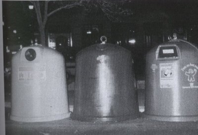 - un grupo de tres iglúes o contenedores en áreas de aportación, formado por un contenedor azul para papel/cartón, otro verde para envases de vidrio y un tercero amarillo para envases ligeros (plásticos, latas/botes y briks).