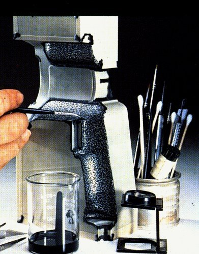 El texturizado químico se realiza actualmente mediante un proceso foto-técnico que frecuentemente requiere retoques manuales de acabado, por lo que es difícil de realizar sobre superficies de formas complejas poco accesibles para el operador.