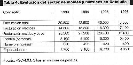 Tabla 4 Evolución del sector de moldes y matrices en Cataluña