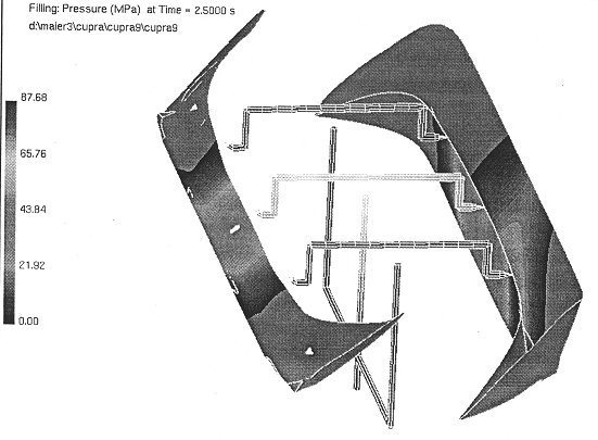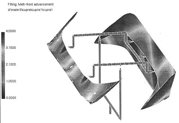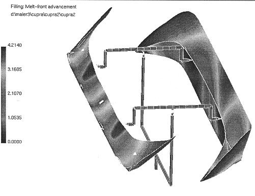 Como ejemplo de las posibilidades que ofrecen estos programas, a continuación se describe la simulación realizada con C-MOLD 97.1 de una pieza que actualmente se encuentra en fase de producción en MAIER S. COOP: el spoiler posterior del SEAT IBIZA CUPRA.
