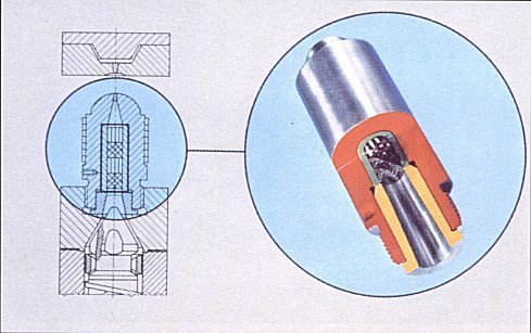 Con la instalación de un mezclador estático Sulzer SMK-X (consistente en una serie de elementos SMX) en el husillo de una prensa de inyección, el flujo se mezcla antes de entrar en la inyección (fig. 4). Esto reduce las deshomogeneidades en la distribución de temperatura, viscosidad y color. Las piezas producidas tienen unas dimensiones más precisas en ausencia e deformaciones, con una sensible reducción de las líneas de flujo. Una intensa mezcla proporciona por otro lado, una mejor dispersión del color que afecta a su vez a la coloración final, permitiendo un ahorro de master fino al 40 %. Como las variaciones de temperatura se compensan continuamente, es posible trabajar con temperaturas medias del flujo ligeramente más elevadas. La menor viscosidad resultante aumenta las características de fluidez del polímero en la inyección. Esto asegura una mejor calidad con menor pérdida de carga. Una reducción de las presiones alarga la duración del husillo y de la válvula antirretorno. Además, aumentan significativamente las posibilidades de utilizar husillos universales.