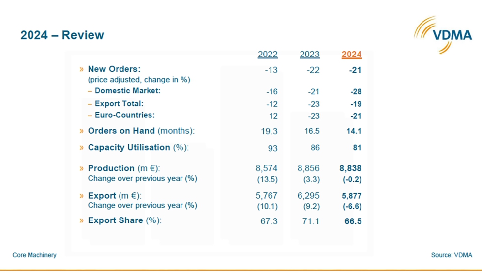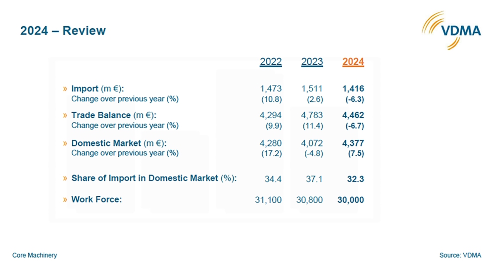 Respecto a la evolución del ejercicio, la asociación prevé que las ventas de 2025 se mantendrán en el mejor de los casos al mismo nivel que el año anterior, siempre que se acumulen suficientes pedidos en un corto periodo. En el peor escenario, si las ventas se retrasan hasta 2026, podrían caer otro 5 %. Por ello, 2025 se perfila como un año de transición, aunque con una perspectiva más esperanzadora.