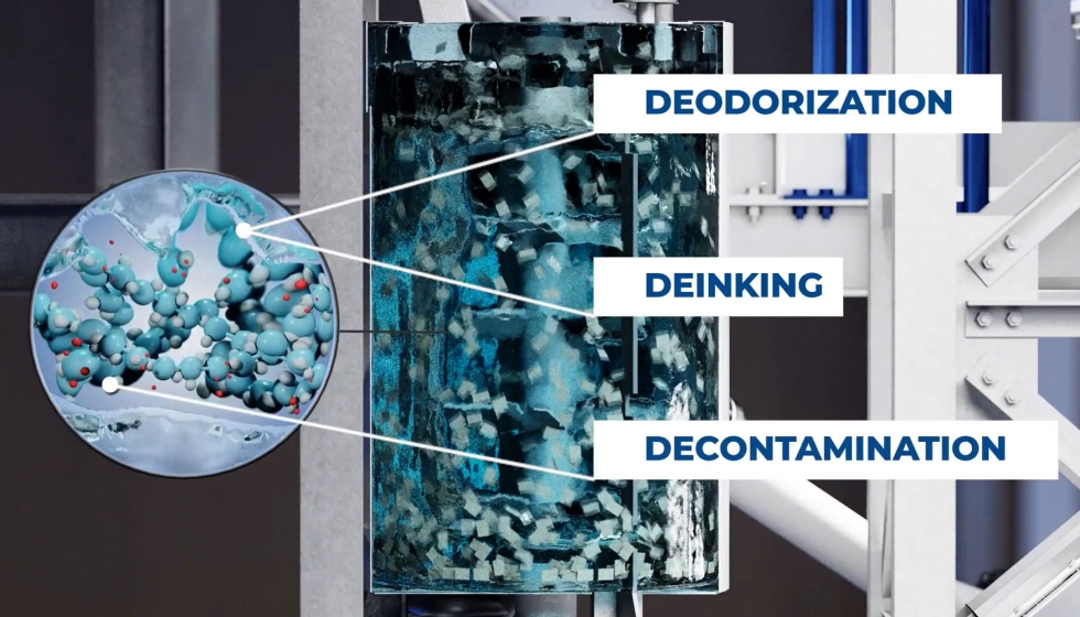 “Siempre hemos querido avanzar en el reciclaje mecánico”, explica Michael Lackner, director general del grupo Lindner, firma representada por Comercial Douma. “Flexloop es un desarrollo lógico y necesario, que complementa el lavado en frío y en caliente. Añade un paso de extracción con disolvente que permite eliminar NIAS, pesticidas, ftalatos, dioxinas y residuos orgánicos, junto con olores, adhesivos y tintas, sin alterar la estructura del polímero”.
