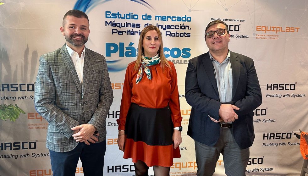 Néstor Castañeda, technical sales engineer de HASCO Hasenclever GmbH + Co KG, Yolanda Gómez Marzo de Fira Barcelona / Equiplast y Nuno Gomes, director general de Hasco Iberia.