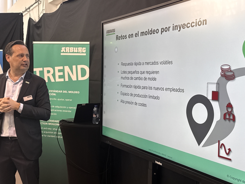 Arburg España ha celebrado en el IES La Foia de Ibi (Alicante) una jornada técnica en la que ha mostrado por primera vez en el mercado español su nueva serie de máquinas de inyección Allrounder Trend. El encuentro ha reunido a más de 80 profesionales del sector —duplicando las previsiones iniciales— en torno a demostraciones en vivo, soluciones de automatización y tecnologías auxiliares orientadas a mejorar la eficiencia, la operatividad y la flexibilidad en planta.