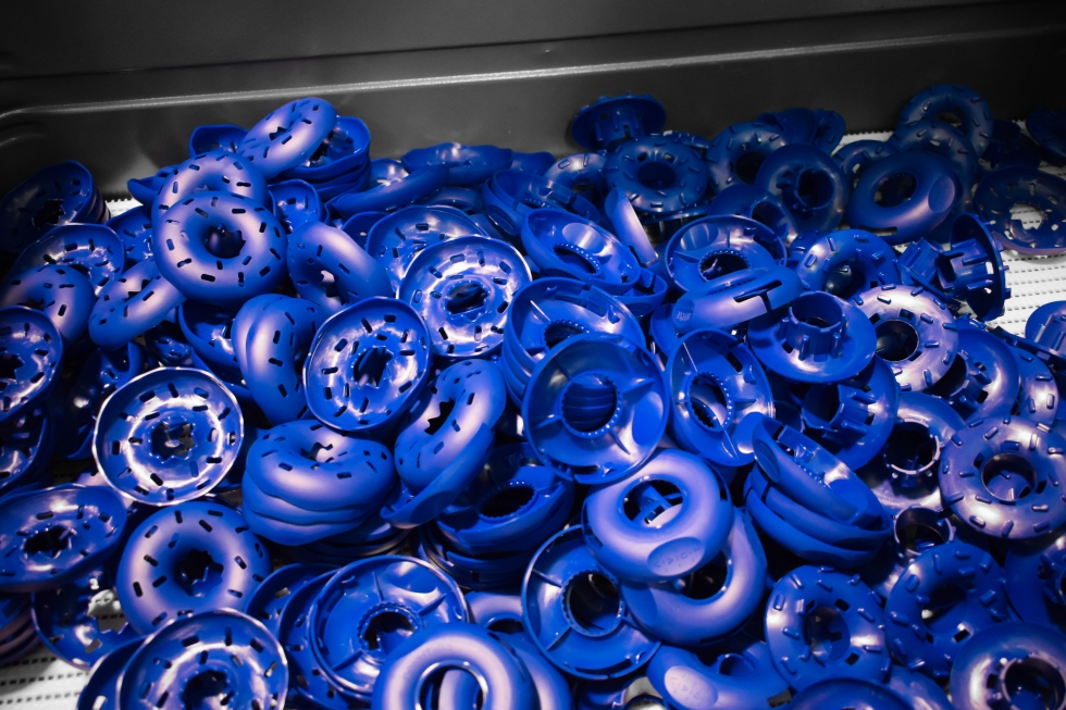 Producción de piezas del proyecto “Donut-ella”, fabricadas con material reciclado procedente de redes de pesca.