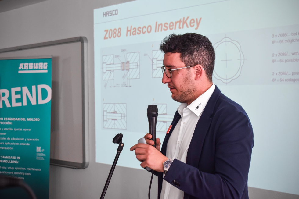 En su intervención —bajo el título “Más de 100 años moldeando ideas”, a cargo de Carlos Vicedo y Javier Estrada—, Hasco Hasenclever GmbH + Co KG presentó su propuesta centrada en la estandarización de componentes de molde, la digitalización del diseño y la optimización de los procesos térmicos en inyección.