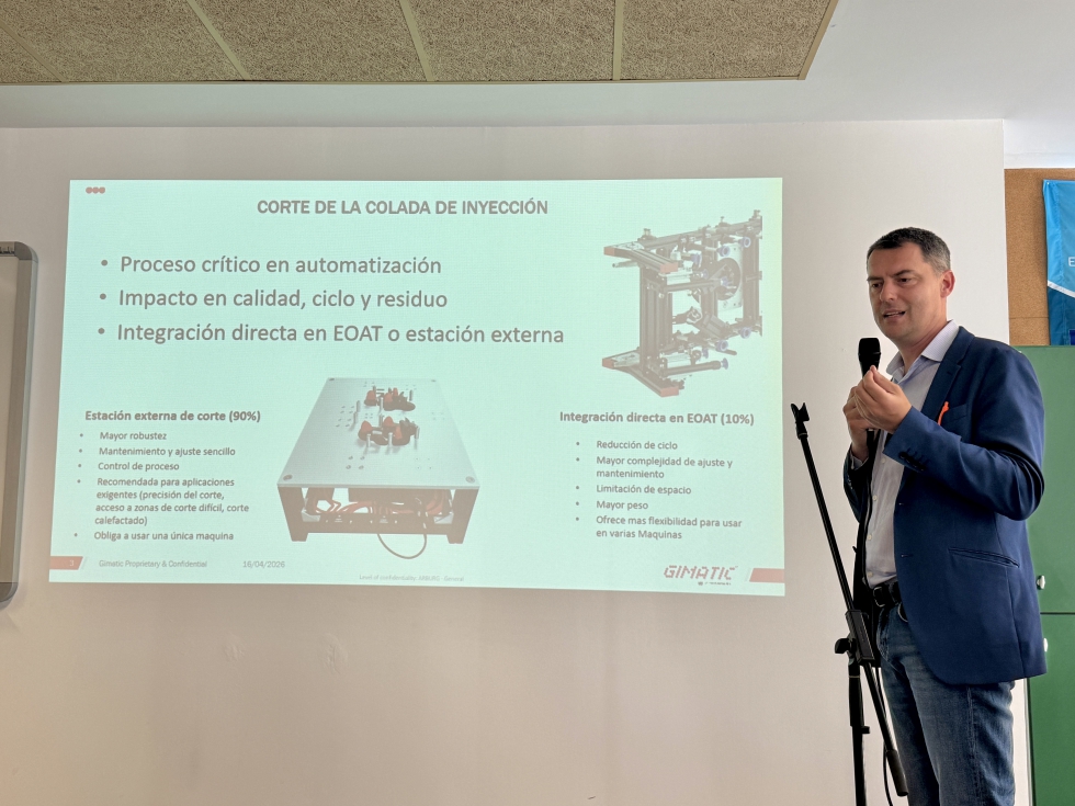 Mathieu Renaud e Gimatic, presentó soluciones de corte de colada automatizada y su impacto en el proceso de inyección.