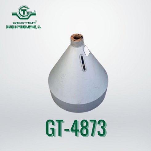 | Detalles | Tolva - Diámetro superior (boca de carga): Ø 600 mm - Altura total: 650 mm - Diámetro inferior (boca de salida): Ø 45 mm - Aluminio - Para inyectora o extrusora |