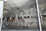 Construida en Acero Inoxidable, está concebida para una buena preparación de la masa de aceituna, ya que sus cuerpos están construidos de forma que el producto está obligado a recorrer todos los vasos que componen la máquina, lo cual le permite al producto mezclarse permaneciendo el tiempo necesario para su completa homogenización.