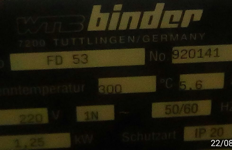 | Detalles | Estufa de secado Binder Modelo: FD 53 L. convencional natural con cámara de acero inoxidable.