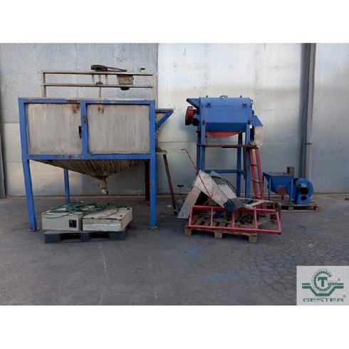 | Detalles | Lavadero para plástico Compuesto de: A) Balsa de acero inoxidable de 2 m x 2 m, con - Motor: 5,5 cv (4 Kw) con agitador - Posibilidad de calentar agua con resistencias B) Cinta de cangillones para salida de material C) Centrífuga de secado: 1 m - Marca Platero - Motor: 14 CV (9,2 kW) a 3000 rpm |