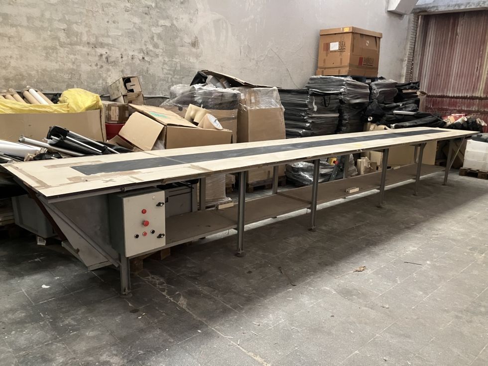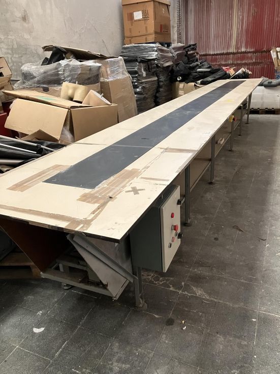 | Detalles | La mesa mide 7 metros de largo, 1 metro de ancho y 90 centímetros de ancho. la cinta transportadora tiene 34 ctms de ancho. necesita reparación y posiblemente un nuevo motor. cuenta con el cuadro eléctrico que se ve en las fotos. el desmontaje, recogida y transporte por cuenta del comprador. |