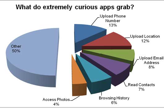 Un 12,03 por ciento de las aplicaciones actuaba de igual forma con los datos de localización del usuario, y un 7,72 por ciento recogía y transmitía direcciones personales de correos electrónicos de los usuarios a terceros.