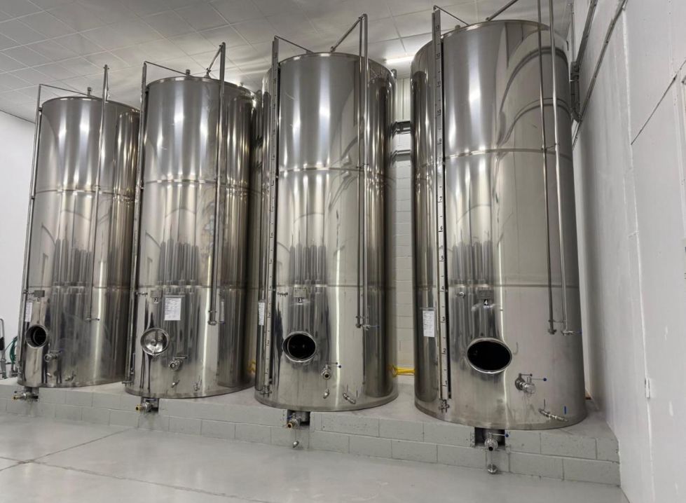 | Detalles | 4 Depósitos de 14.000 L fondo plano inclinado, acero inoxidable en acabado BA, con adicción de nitrógeno, tubo y ducha de lavado o de remonte, salidas, nivel, grifo toma muestras etc. (Año 2017). Ideales para vino o aceite. |