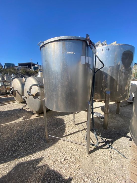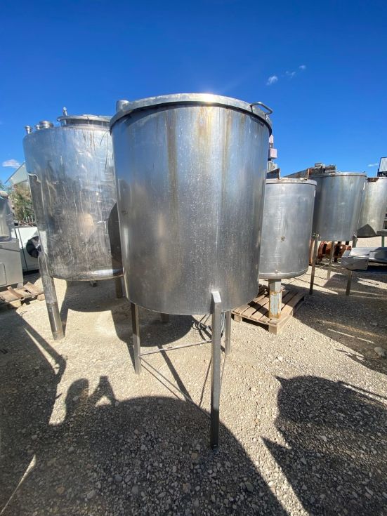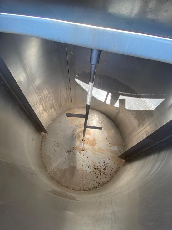 | Detalles | Depósito agitador en acero inoxidable con fondo plano, tres patas de apoyo. Dos deflectores rompeolas y agitador de palas.