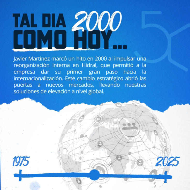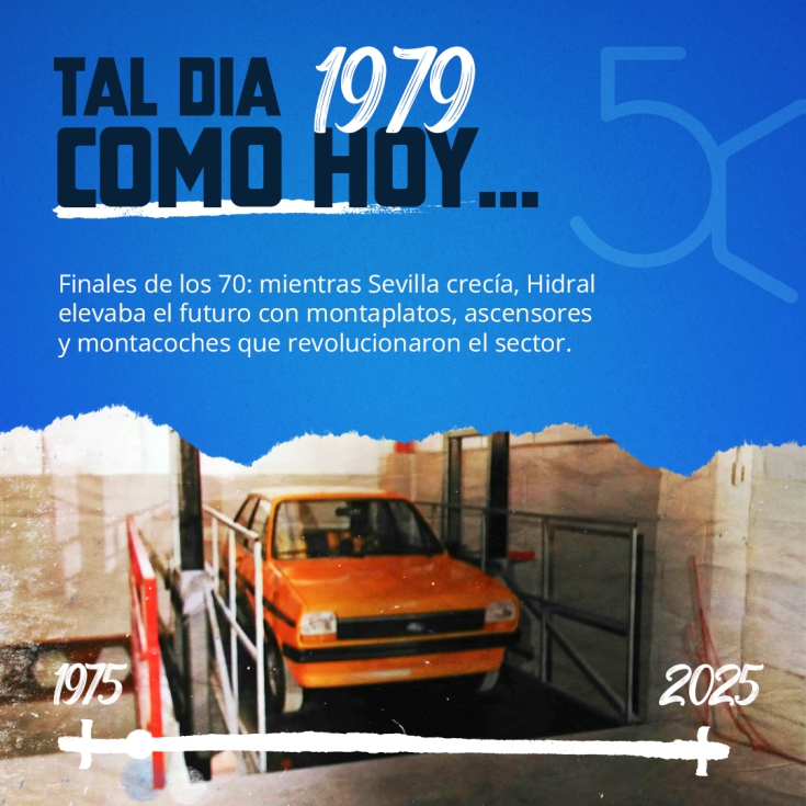 Hidral cumple medio siglo de trayectoria consolidada en el sector de la elevación. Fundada en 1975 en un pequeño taller de Sevilla, la compañía ha evolucionado hasta convertirse en un referente internacional con cerca de 300 empleados, presencia en más de 120 países y exportando el 70% de su producción.