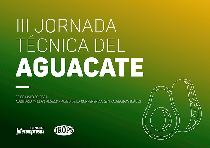 El Grupo Interempresas y TROPS organizan la tercera edición de la Jornada Técnica del Aguacate. Tendrá lugar el 22 de mayo, a partir de las 9:00 horas, en el Auditorio Millán Picazo (Puerto de Algeciras) con la participación de un nutrido grupo de expertos, profesionales y empresas líderes del sector. Organización Interprofesional, el reto de la disponibilidad y gestión del agua, aspectos relacionados con la sanidad vegetal, avances en el control del hongo aéreo o las tendencias de consumo serán algunos de los asuntos que se aborden.