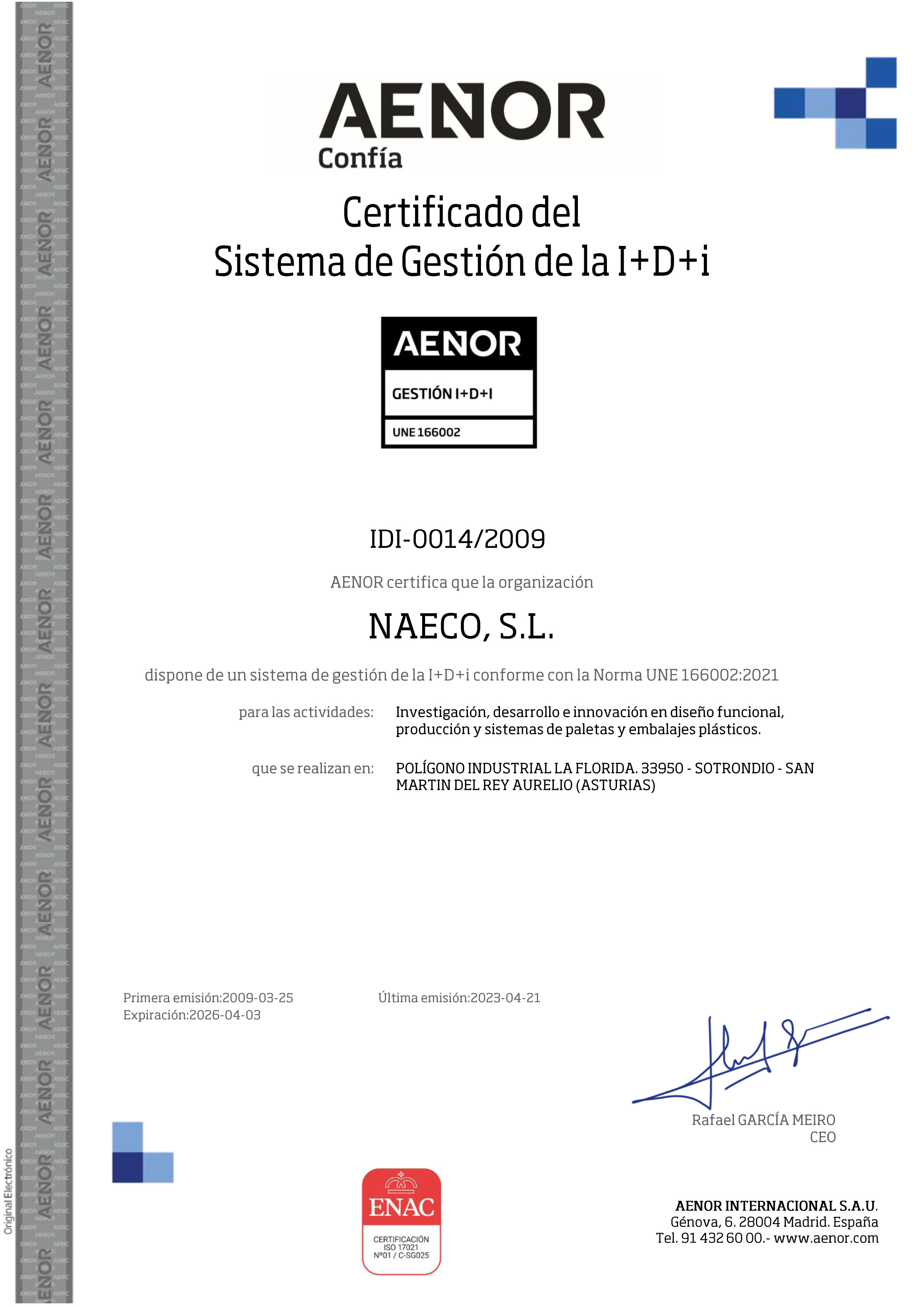 ISO 166002: Certificado del Sistema de Gestión de la I+D - Naeco: Certificado-UNE-166002_NAECO.jpg