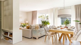 trabajo del estudio se centró en resolver con precisión a distribución del resto de la zona de día, que queda directamente conectado con ella. El aseo de cortesía, situado en la entrada de la vivienda, se ha decorado añadiendo detalles en madera y textiles en tonos neutros. Primera Planta: dormitorios infantiles